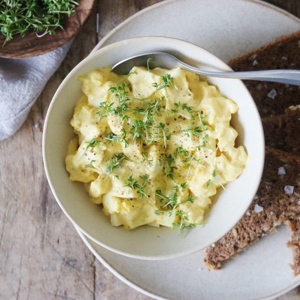 Den traditionelle, hjemmelavet ægge salat serveres på rugbrød, og måske med en anelse ekstra karse eller purløg på toppen. Versionen der spises oven på sild, altså karrysalat, laves en anelse anderledes, men denne opskrift kan dog sagtens bruges til selvsamme. Derudover kan det anbefales at bruge en karry af god kvalitet. Madraskarry er til den stærke side, men smager også rigtig godt i hjemmelavet pålægssalat. Det samme er tilfældet med gurkemeje, som bidrager med en anelse smag men mest af alt en flot, gul farve.