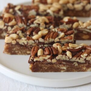 - Hak nødder (f.eks peanuts og pekannødder) groft, og fordel udover chokoladen