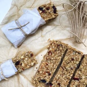 Denne opskrift på snackbarer har jeg efterhånden lavet en del gange. De opbevares rigtig fint i køleskabet, og kan varieres med lige præcis de nødder og kerner, som jeg netop ligger inde med. Min lille spilopmagers favorit er lige præcis denne opskrift, blot med rosiner. Hun er nemlig inde i det vi i øjeblikket kalder en “rosin-periode”. Der skal simpelthen rosiner på hendes havregrød om morgenen, i slikskålen om fredagen og altså også i disse hjemmelavede snackbarer, hun nyder at spise om eftermiddagen. Derfor er det også bare genialt med sådan en nem grundopskrift som denne, så man hurtigt kan skifte tranebær ud med rosiner, eller måske endda tilføje mørk chokolade, hvis dine snackbarer skal spises som en sundere dessert, og ikke med i madpakken.