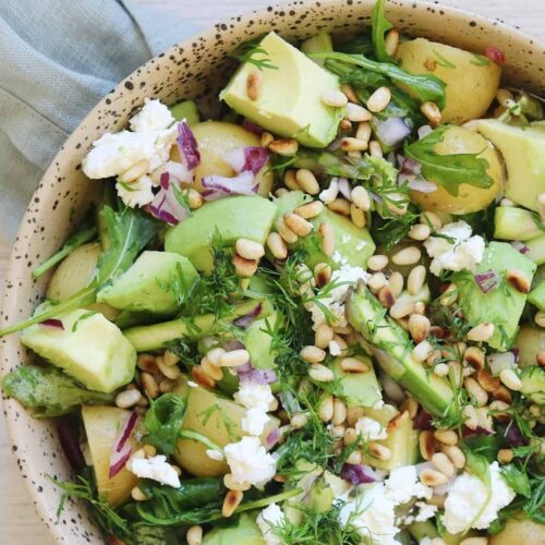 Salat med kartofler, asparges og pinjekerner