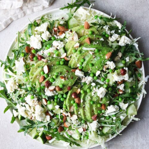 Salat med ærter, avokado og spidskål