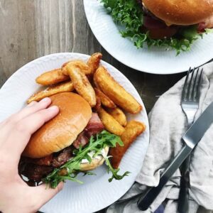 Og selvom jeg da stadig laver en masse mad, så har vi i den grad også nydt take away mad i de sidste fjorten dage af vores søns levetid. Mad man ikke har lavet selv, kan altså også noget helt særligt, og særligt burgerne fra Mauritz. De er nemlig, lige for tiden, mit absolut yndlings take away sted. Burgerne er lavet af virkelig gode råvarer, og kan fåes i mere eller mindre gourmet udgaver. Jeg er dog stor tilhænger af den klassiske burger med ost og bacon, hvorimod B tit eksperimenterer med både mexicanske udgaver og dem med blåskimmelost.
