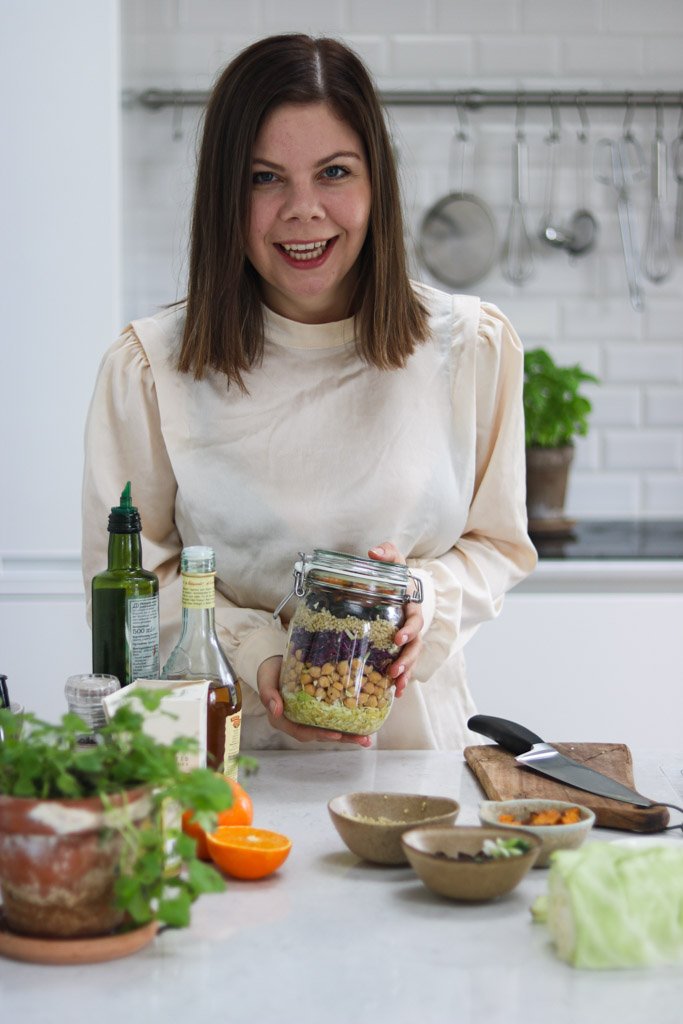 - Glas: Udover at et patentglas eller syltetøjs glas er utrolig pænt at have i sit køleskab, så har det også visse andre fordele. Man kan nemlig stable maden i glasset, alt efter hvordan råvarerne nemmest holder deres tekstur. Hvis man placerer dressingen i bunden af glasset, så sørger man for, at væsken ikke blødgør grøntsagerne alt for meget. Ligesom man samtidig kan placere kål og andre typer grøntsager med et højt fiberindhold i bunden af glasset, så dressingen marinerer råvarerne. En ulempe ved glas er dog, at de er utrolig tunge og handige at transportere, og derfor arter de sig bedst til hjemme kontoret i forhold til foodprep.