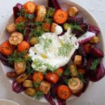 Bag grøntsagerne i ovnen i ca. 25-30min, til rodfrugterne er gennembagte og gyldne på overfladen