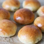 Pensl bollerne med sammenpisket æg og bag bollerne i ovnen ved 180 graders varme i ca. 12-15 minutter eller til bollerne er let gyldne på overfladen og færdigbagte