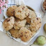 Hak pære og nødder groft, og bland i bolledejen