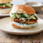 Saml burgeren ved først at fordele tatardressing på underbollen og dernæst placere fiskebøf, spidskålssalat, frisk og syltet agurk og slutteligt overbollen