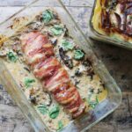 Steg mørbraden i ovnen ved 180 graders varme i ca. 35-40min eller til mørbraden er gennemstegt og baconet blevet sprødt