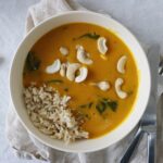 Blend græskar blandingen direkte i gryden med en stavblender eller hæld det i en almindelig blender (græskar retten behøver dog ikke være blendet, men så bliver den heller ikke lige så cremet)
