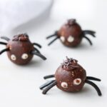 Placer to dråber smeltet, hvid chokolade i øjnene og lad evt. edderkopperne tørre i køleskabet undervejs så chokoladen tørrer ind og ikke smelter sammen