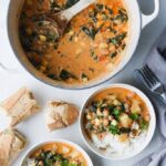Skær squash i tern og tilsæt det til gryden sammen med kokosmælk og frisk spinat