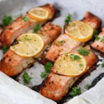 Skær skiver af den anden citron og placer citronskiverne på overfladen af laksen