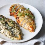 Steg kyllingebrysterne i ovnen i ca. 20-25min eller til kødet er gennemstegt, saftigt, og let gyldent på toppen. Hvis du ønsker en mere sprød overflade, så giv da kødet et par minutters grill i ovnen.