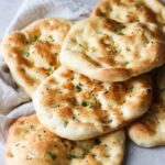 Pensl naanbrød med smeltet smør og evt. nigellafrø, knust hvidløg, chiliflager, salt, peber mm.
