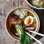 Rens pak choi og skær det i fire dele på den lange led. Tilsæt pak choi til suppen og lad det koge i et par minutter