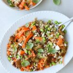 Skræl gulerødderne, skær dem derefter i lange bånd vha. en kartoffelskræller