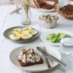 Server sildesalaten på frisk rugbrød eller franskbrød
