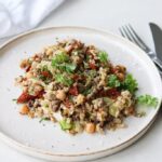 Hak spidskål fint, og tilsæt det sammen med soltørrede tomater, kikærter og krydderier