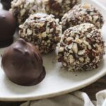 Vend romkuglerne i smeltet mørk chokolade med hakkede nødder, kakaopulver eller hvad du ønsker