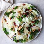 Skær æble og rødløg i tynde skiver og fordel det udover kålsalaten